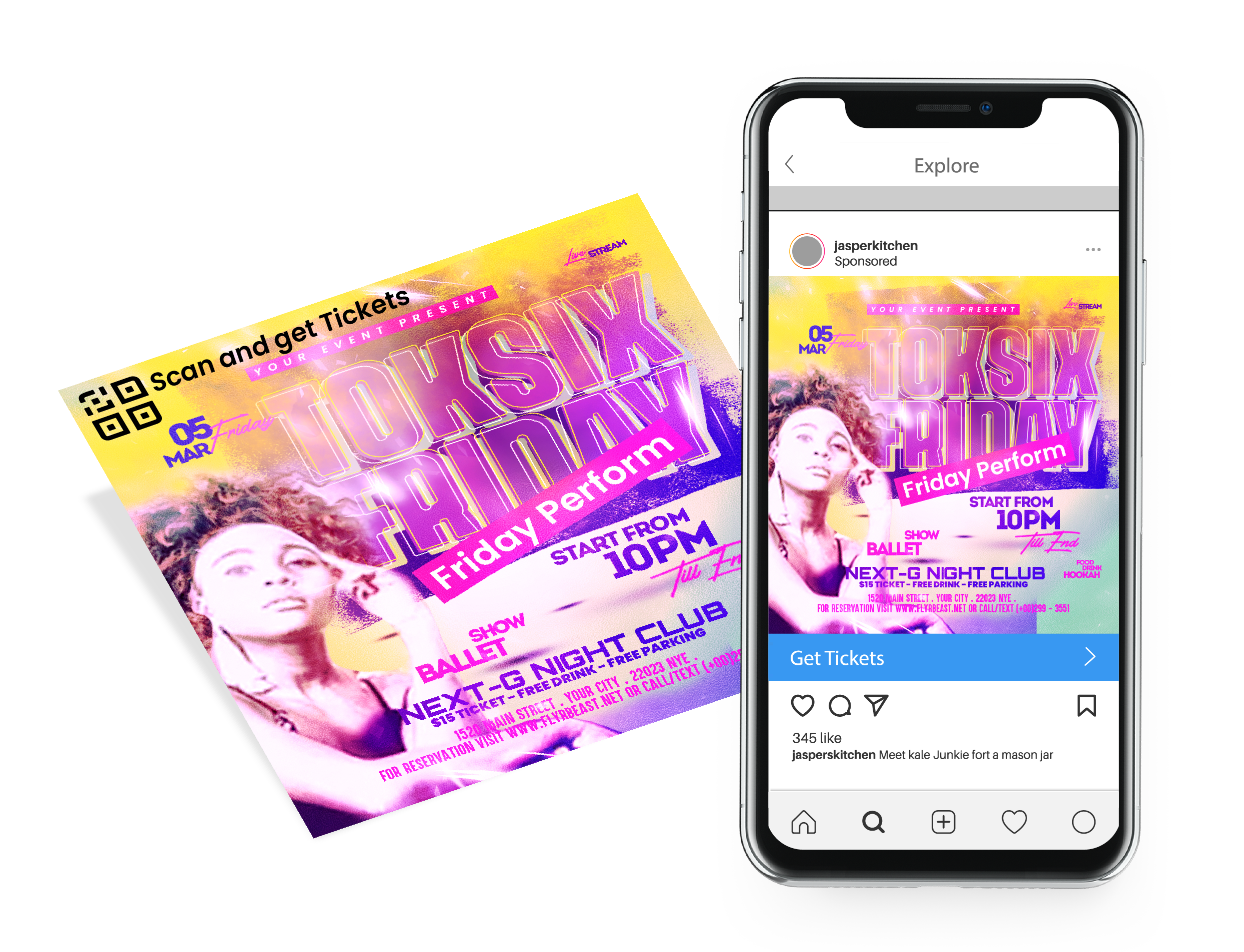 Sell tickets from your printed advertising, Allow that wherever your advertising is seen, your viewers can simply scan a QR code and they can get a ticket, imagine that from Magazines, Newspapers, flyers, posters, banners, brochures, etc, your viewers can become potential attendees to your event.
