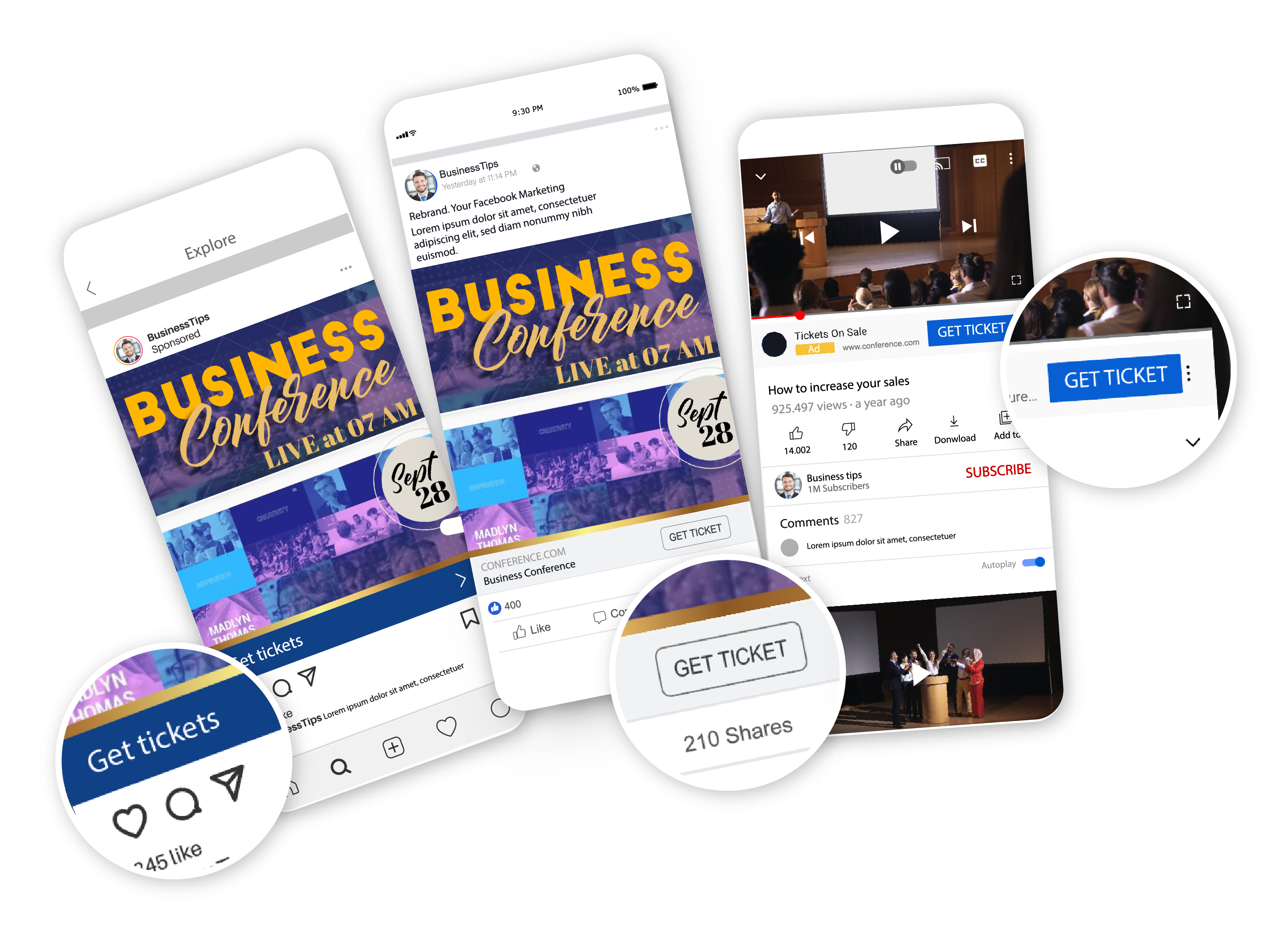 Sell tickets from social media, Let wherever your viewers seen your advertising they can simply click and they can get a ticket, imagine that from a post on social media, a video, a podcast, your fan page, social media influencers, etc. your viewers can become potential attendees to your event.