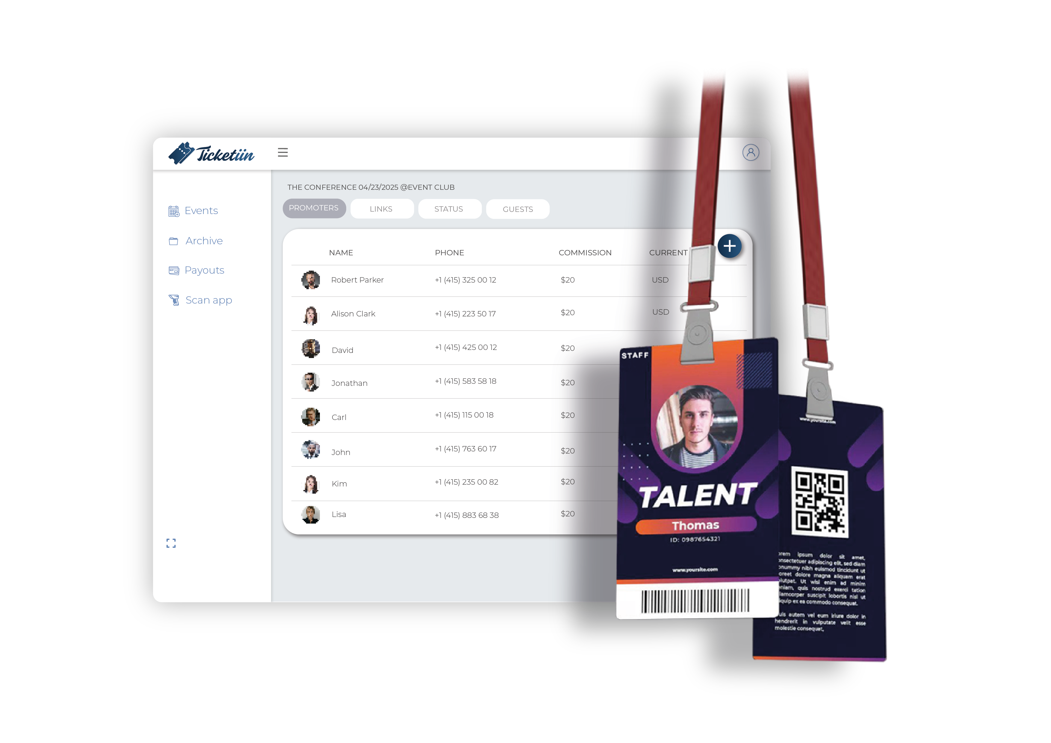 Assign promoters for each event, so you can distribute your tickets in more places and more people, they can help you share on social networks with their friends, your staff will be able to sell your tickets remotely or in person. Assign a commission to each promoter, see the performance of each promoter on your dashboard and see who is giving you the most results.